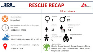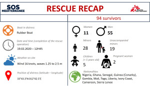 – On February 23rd, at 15:54, the disembarkation of 276 survivors is completed and the Ocean Viking is quarantined as a precautionary measure by Italian authorities.