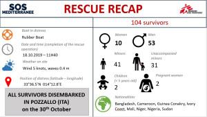 – On the 30th of October, Ocean Viking disembarked all 104 survivors at Pozzallo port