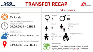 -On the 9th of September, Ocean Viking conducted transfer from SV Josefa. 34 survivors safely onboard