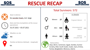 On July 6th, Ocean Viking sends a request for the designation of a place of safety for the 572 survivors onboard.