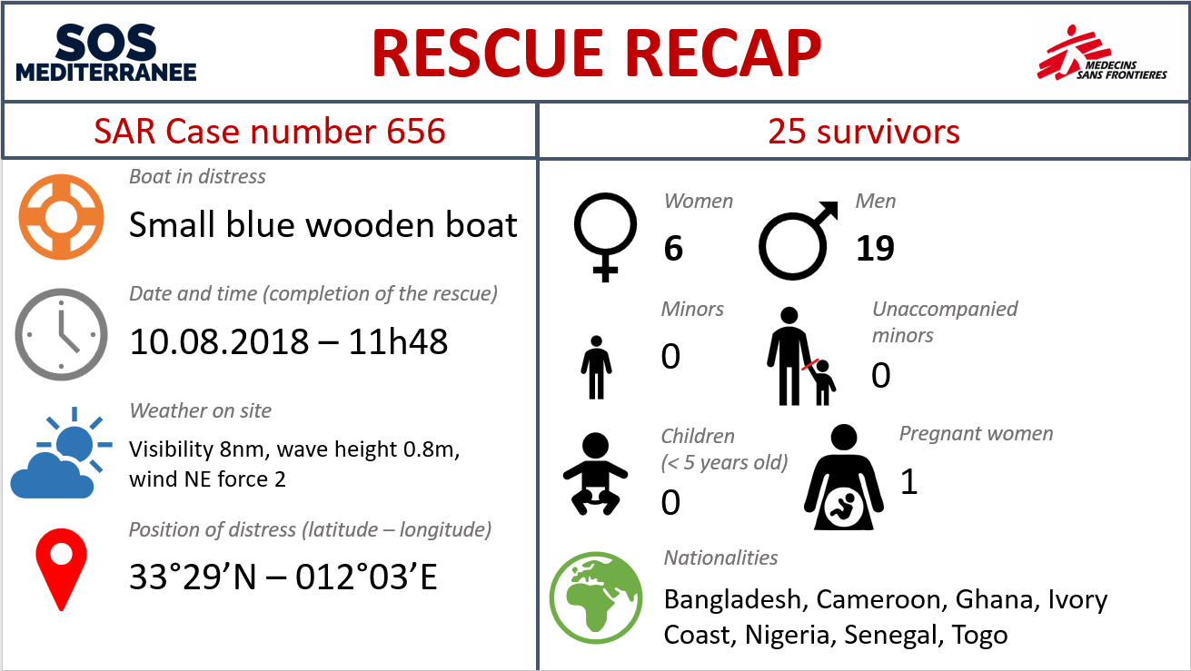 – Sunday, while proceeding north since 11h00 in the morning, Aquarius has been instructed by the Libyan JRCC to conduct a rescue of 10 people in distress. Aquarius searched for the boat which continued Heading north and found it as it entered the Maltese SRR. With Maltese authorization, Aquarius provided lifejackets, food and water to the people on the boat, who informed Aquarius that they would like to continue their way north.