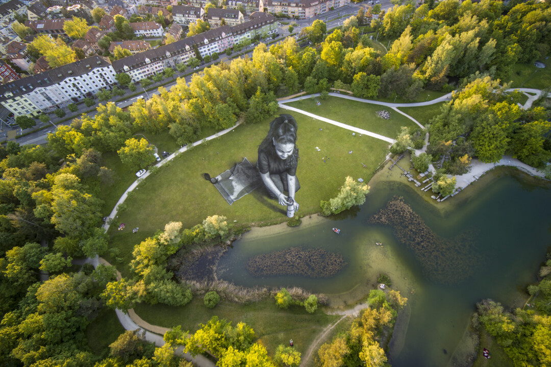 SAYPE, the world-renowned artist, has unveiled his latest work in support of SOS MEDITERRANEE in Zurich. Entitled “Bright Dreams,” the giant lawn fresco features a young girl surrounded with symbols of sea rescue, and conveys a powerful message of humanity